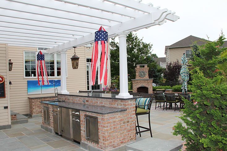 Want more than a simple dining area? How about a complete entertainment area, perfect for hosting outdoor parties? With a large pergola kit, you can build a space that easily fits an outdoor bar, seating, and a sound system, making your backyard the place everyone will want to be.