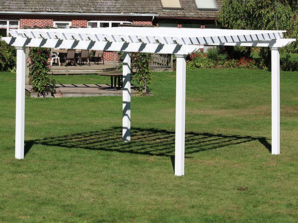 Garbrella Pergolas are backed with a lifetime warranty against yellowing, blistering or peeling. They are designed to withstand high wind forces without breaking and can be used confidently on beach front properties. We can say all this because Garbrella is committed to manufacturing only the highest quality vinyl pergola kits constructed from durable, long-lasting materials. Custom pergola kit sizes are available.