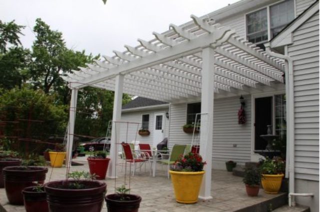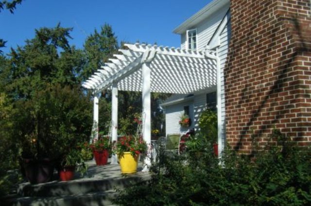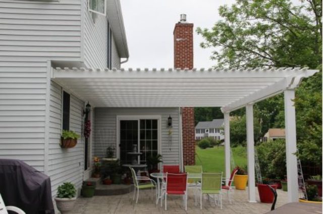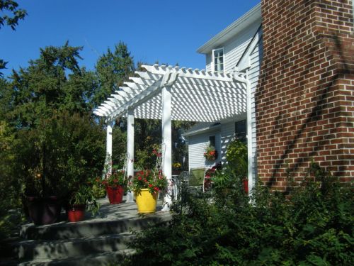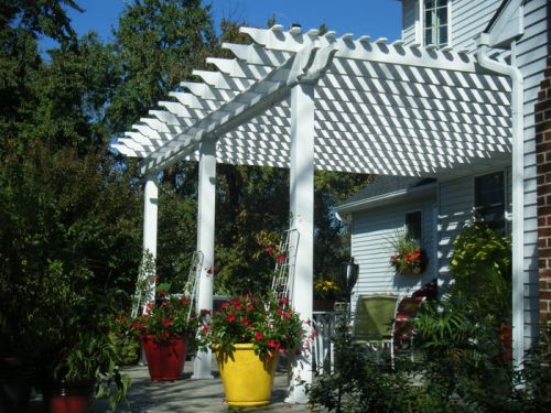 • attached white vinyl pergola over a porch area