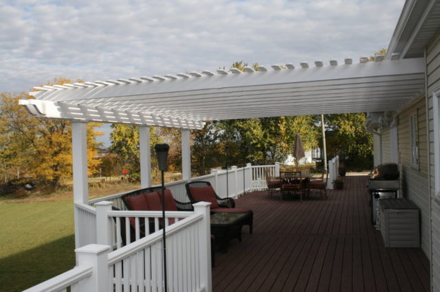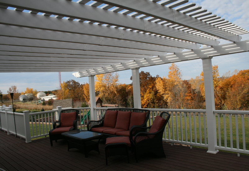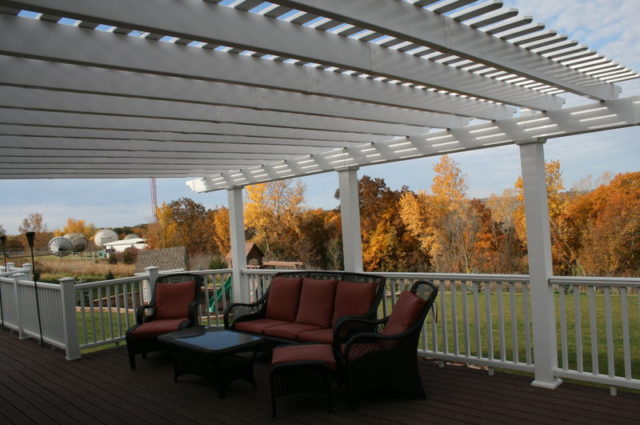 For this customer, relaxing in cozy patio chairs under the shade of their pergola on the deck is a dream come true, especially in the crisp autumn air.